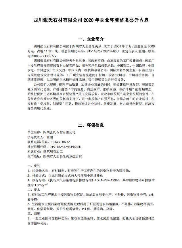 hth·华体会(中国)官方网站-hth.com 2020年企业环境信息公开内容